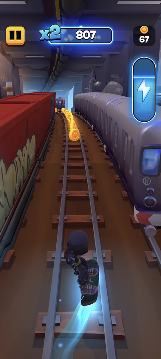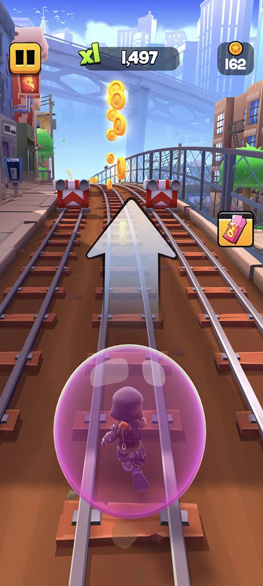 Subway Surfers City (MOD, Unlimited Coins/Keys) is a fast-paced endless runner where you can explore new city locations with characters like Jake, Tricky, and Fresh. The game tests your reflexes as you collect coins and dodge obstacles. You control your character by swiping on your phone screen to move, jump, and avoid hazards. There are also special abilities to help you, such as a magnet that pulls in coins and sneakers that let you jump higher. Sometimes, you can use a booster to ride a skateboard at top speed. As you play, you need to escape from the guard and his dog, who are always chasing you. If you hit an obstacle, you can use special items to continue from where you left off.