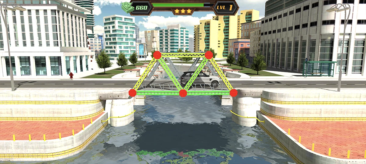 Bridge Construction Simulator (MOD, Unlimited Hints) is a popular game where you play as an engineer building bridges. The first levels are simple, but the challenges quickly become more complex as you progress. The game offers different modes: arcade mode is easy to pick up with straightforward tasks, while realistic mode demands more patience and focus as each level gets harder. The developers put a lot of effort into the physics, making it a key part of the gameplay.