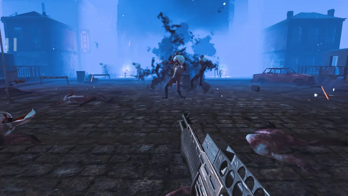 Zombeast (MOD, Unlimited Money) is a game where you enter zombie-filled areas to complete missions and fight off enemies with different weapons. The zombies come in many types, so you need to pick the right weapon for each situation. There are also various support items to help you clear levels more easily. In the game’s world, the rising number of zombies has thrown the town into chaos. The main character is chased by zombies of all sizes and ends up in his neighbor’s room, where he finds a shotgun to defend himself. Now, he must fight to survive. You control the character from a first-person view, and the controls are simple. Just swipe on the left side of the screen to move and tap on the right to attack. The game also features auto-aim, so you only need to focus on moving and shooting at enemies. As you move along a set path, your goal is to defeat a certain number of zombies. With a shotgun, you can easily take down most zombies you encounter. You can also switch weapons based on what appears in front of you, and each gun works better against certain types of zombies. For example, slim zombies are easy targets for the shotgun. If you spot a gas tank, shoot it to cause a big explosion and deal damage to groups of zombies. The revolver is great for quickly attacking large zombies that keep coming at you. Ammo is limited for each weapon, so if you need to kill a lot of zombies, you’ll have to look for supply boxes scattered around the level. These boxes are easy to spot because of their bright colors and usually let you reload or pick a new weapon. If you want a better weapon, check the store, where you can buy new guns with the money you earn in the game. You can also upgrade your weapons, and the number of stars on the right side of the screen shows how many times you’ve improved their attack power.